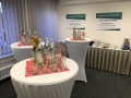 Kalte Getränke, Kaffee, Teee, Gebäck oder belegte Brötchen möglich.